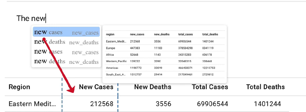 和数据驱动的文字交互:用户可以与基础数据连接的文本进行交互操作,交互类型取决于该数据短语关联的数据类型