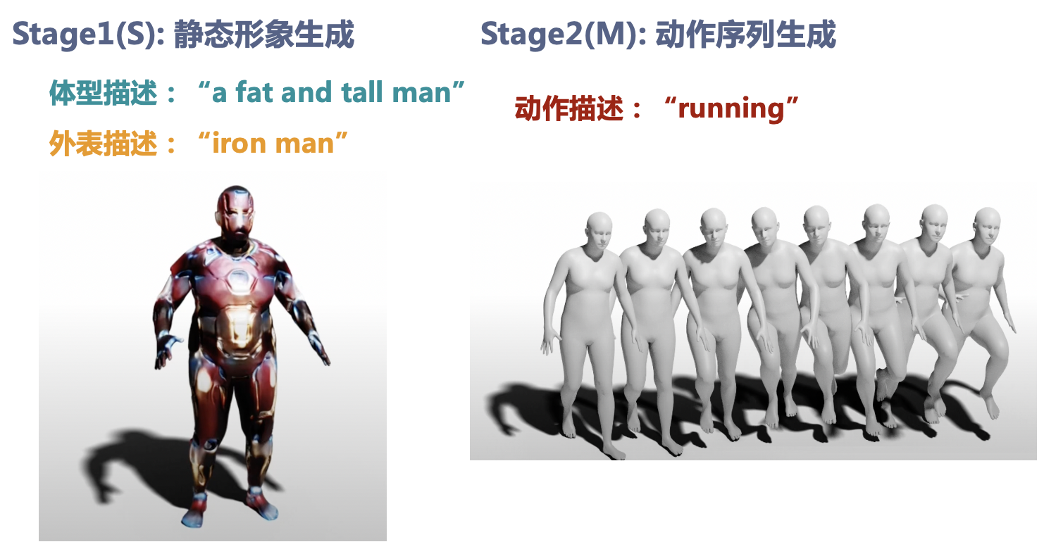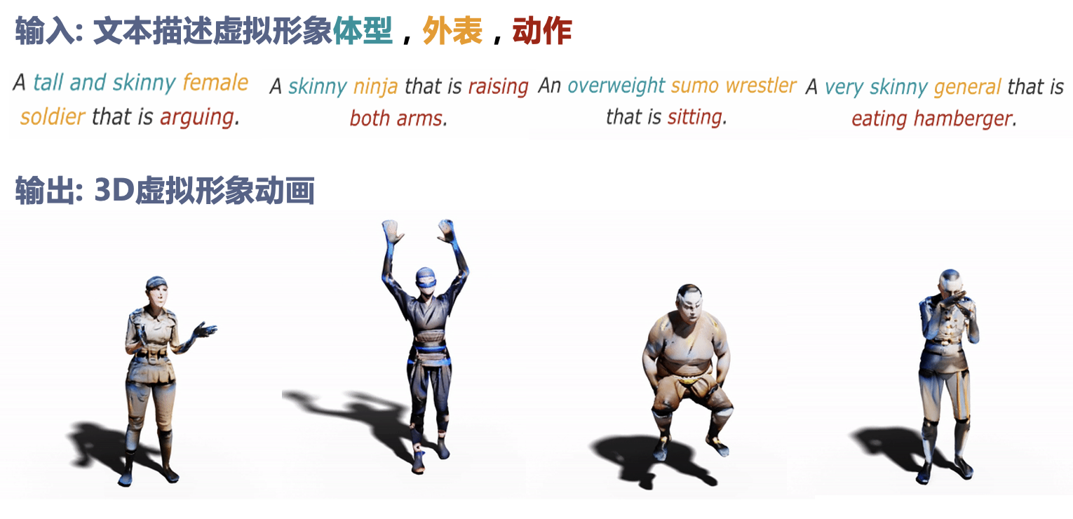最终将得到的动作序列应用于得到的静态形象,即为基于文本生成的虚拟化身。