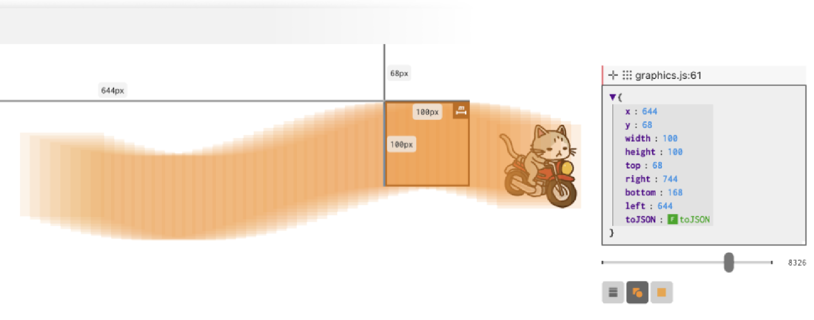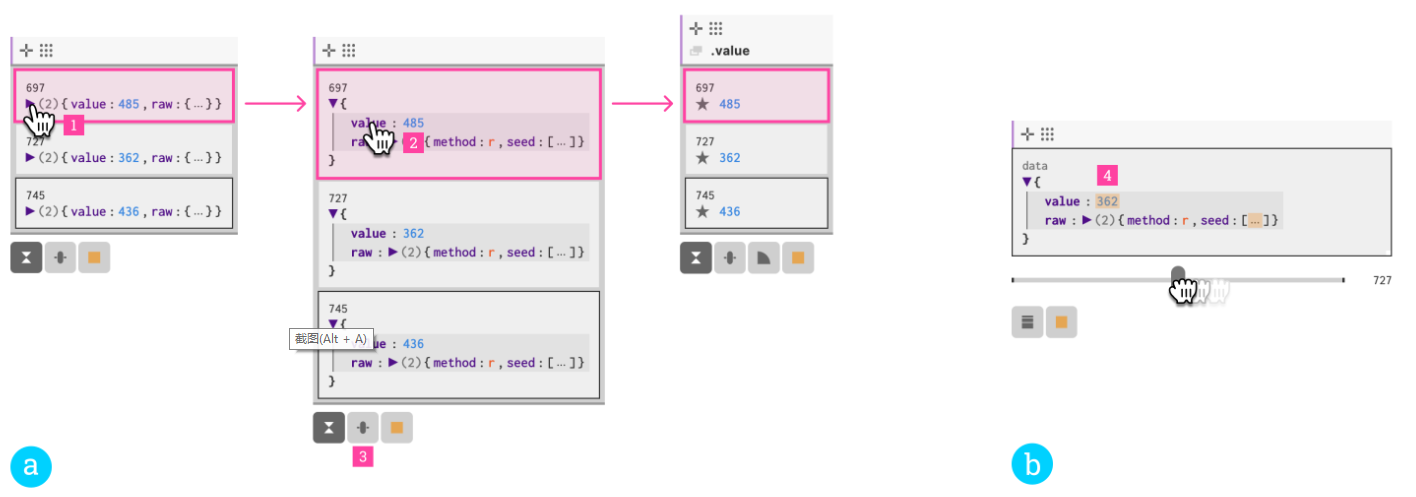 • 通过以热图的方式显示一个元素的边界矩形随时间变化的历史,实现元素移动的可视化