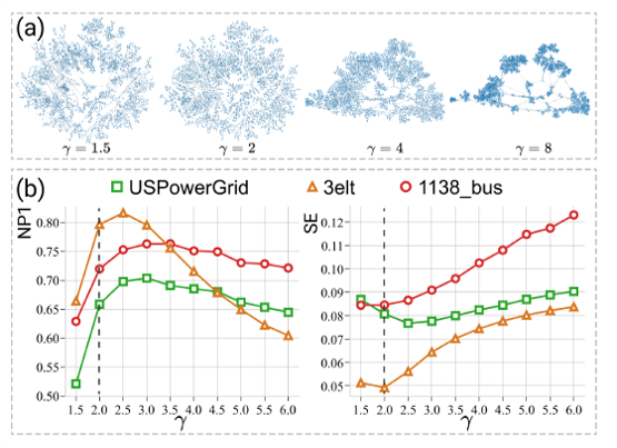 下图(a)中随着γ的增加,节点更加聚集