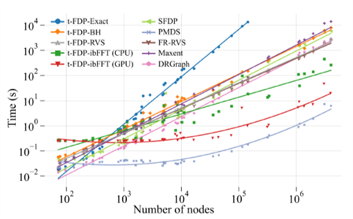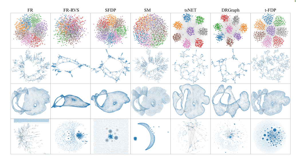评估二:基于ibFFT的t-FDP与其他布局算法的比较